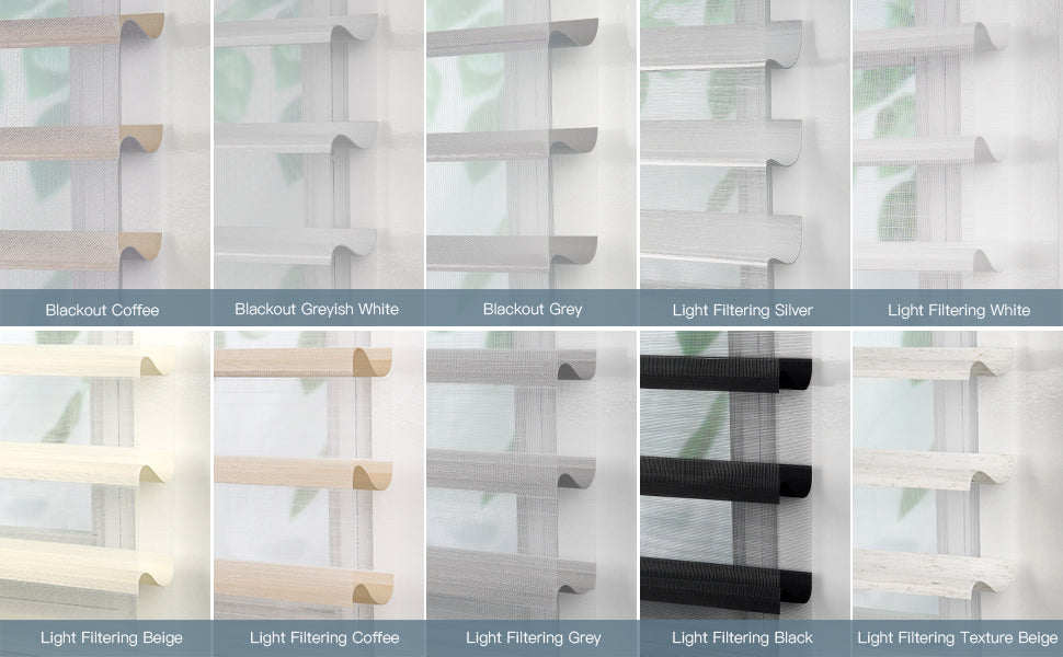 • Premium Fabric Material: Made with a three-layer design that combines soft fabric vanes and sheer panels, providing UV protection and flexible light control.