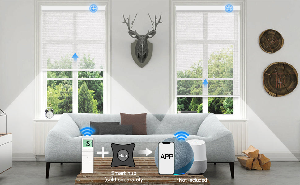 Effortlessly raise or lower the blind with a click of the remote. Connect an RF hub to Alexa/Google for voice, app, or scheduled control.