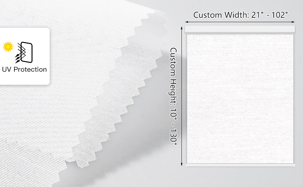 Made from 20% blackout transparent sheer fabric, this see-through material offers UV protection while maintaining exterior visibility. Both sides are identical, and the cordless design ensures a child- and pet-safe environment. Ideal for living rooms, patio sliding doors, offices, and more. For indoor use only.