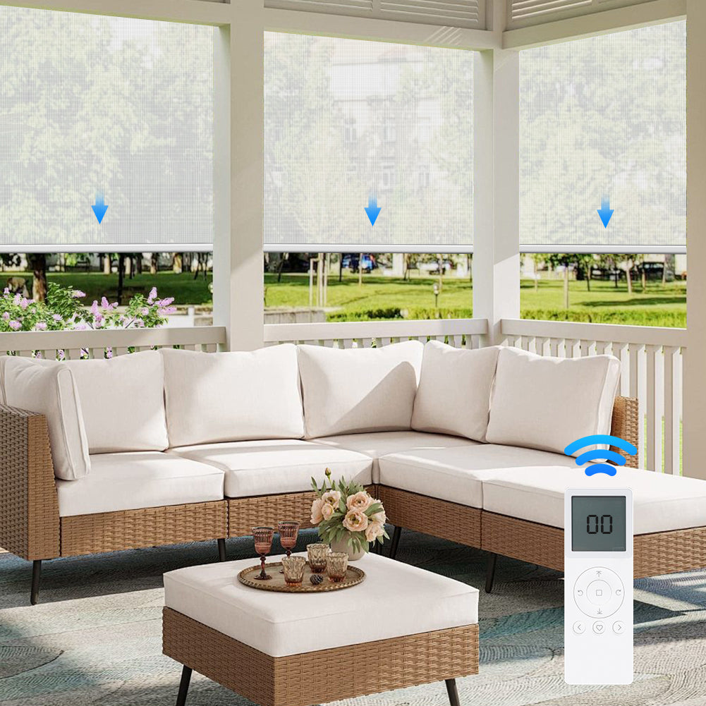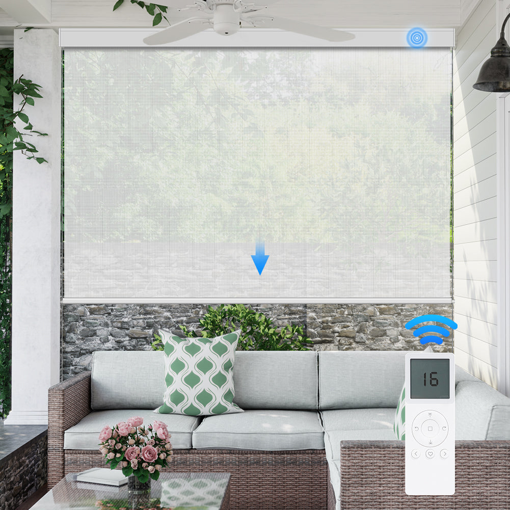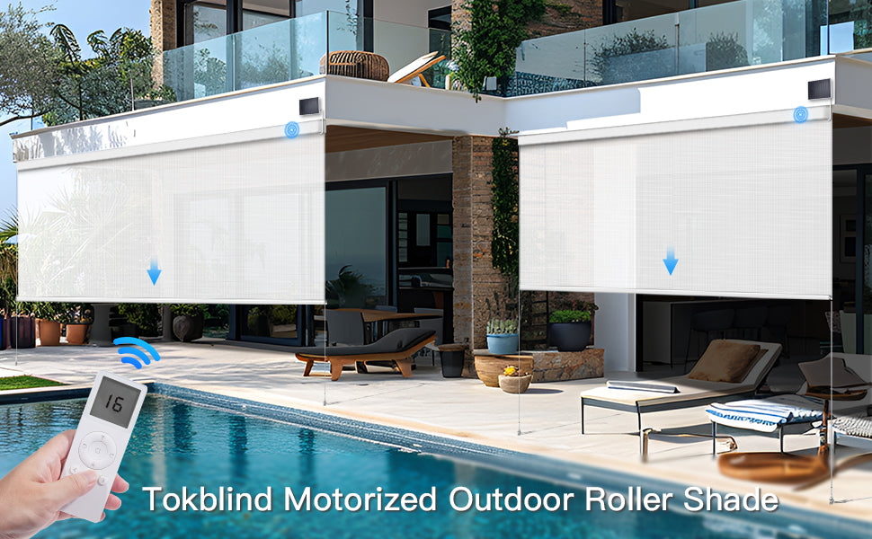 Tokblind motorized outdoor shades offer hands-free convenience—easily raise or lower the shade with just a click of the remote.